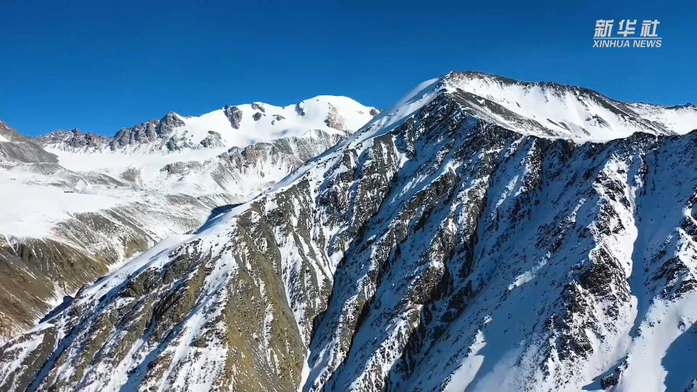 這是1月23日在青海省海北藏族自治州門(mén)源回族自治縣境內(nèi)拍攝的崗什卡雪峰(無(wú)人機(jī)照片)。新華社記者 張龍 攝