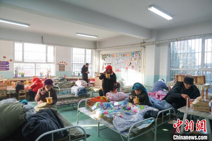 資料圖為在青海省海東市民和縣中川鄉(xiāng)美一小學的震區(qū)集中安置點內(nèi),受災(zāi)民眾正在吃早餐。馬銘言攝
