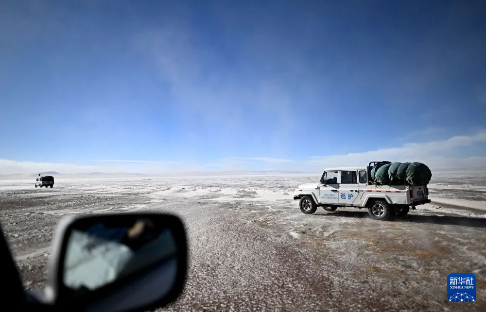 記者看到,當(dāng)?shù)仫L(fēng)雪不斷、飛沙走石,道路顛簸曲折。巡山隊(duì)員驅(qū)車從可可西里索南達(dá)杰保護(hù)站出發(fā),途經(jīng)卓乃湖、可考湖等地,對(duì)沿線地區(qū)開展常態(tài)化巡檢。隨行車輛配備了帳篷、睡袋、自熱食品等生活物資和必要的急救物資。巡山隊(duì)員白天鑿冰取水,晚上則要住在野外的帳篷里。