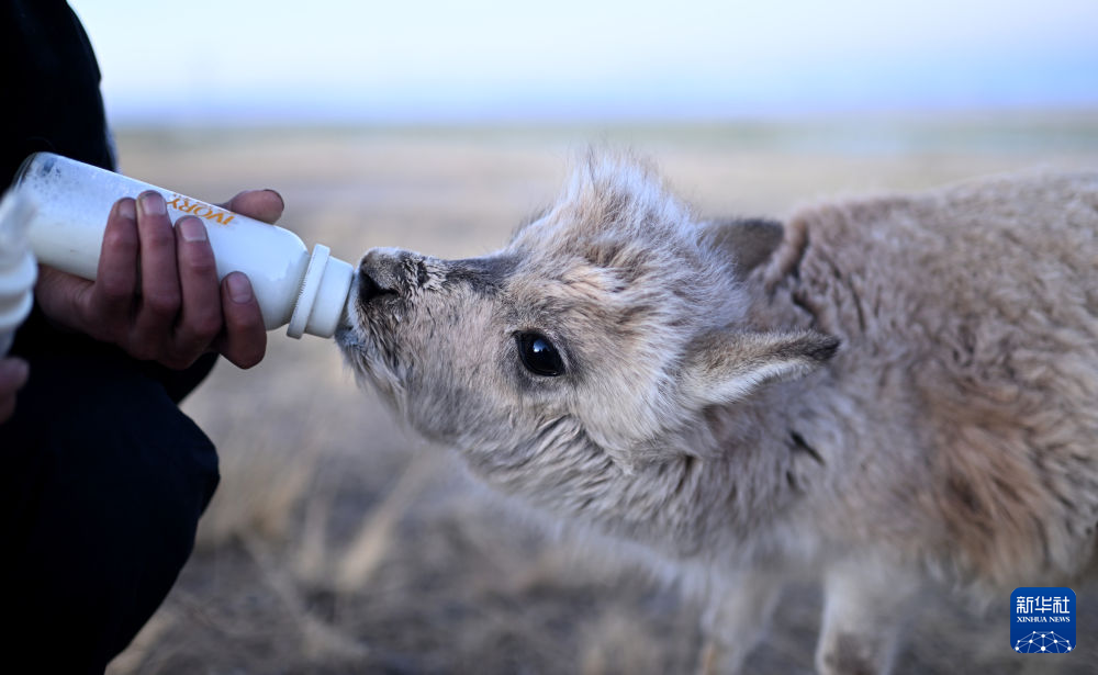 夕陽西下,索南達杰保護站映照在一片金黃之中?!疤栂律角埃欢ㄒ雇昴?,否則天氣太冷、牛奶涼得快,小藏羚羊喝了容易鬧肚子。”說話間,駐站巡山隊員才文多杰提著牛奶和奶瓶,匆匆忙忙向保護站后面的網(wǎng)圍欄走去。