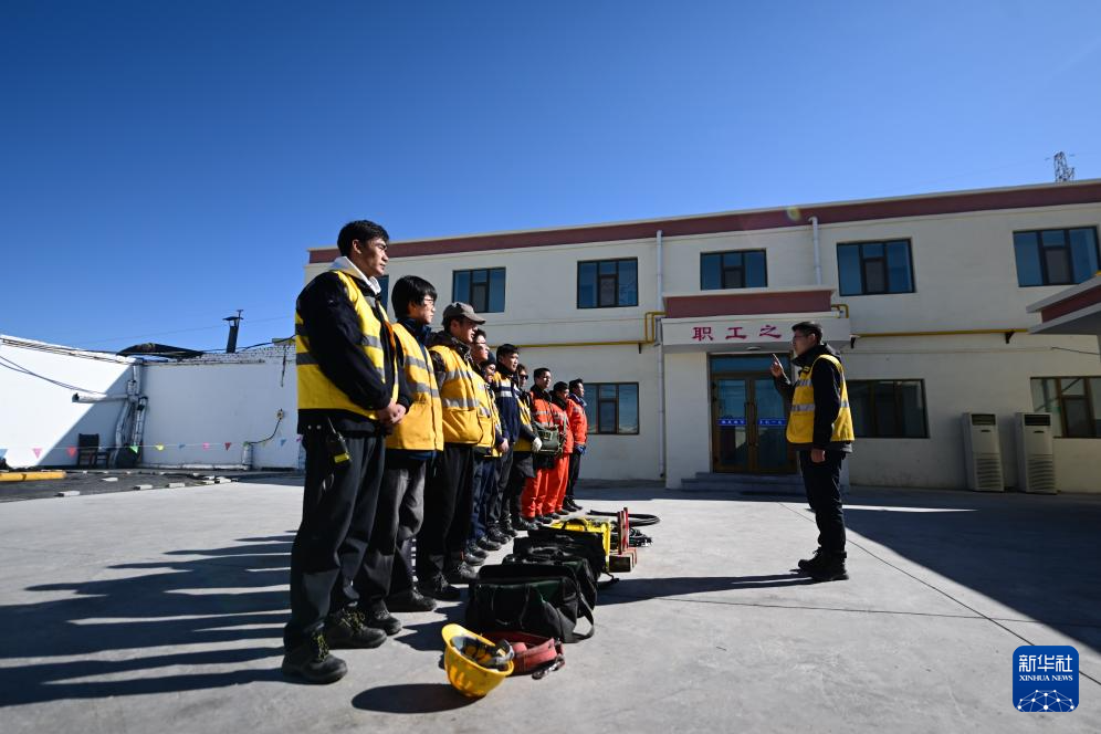 1月29日,格爾木電務段格爾木東信號車間察爾汗信號工區(qū)的職工在開展檢修作業(yè)前分配任務。新華社記者 張龍 攝