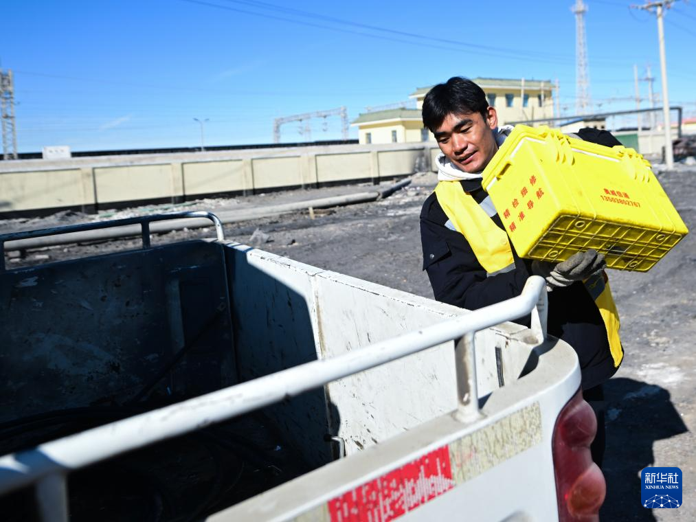 1月29日,格爾木電務段格爾木東信號車間察爾汗信號工區(qū)職工普布旦增將工具箱裝車準備前往區(qū)間進行作業(yè)。新華社記者 張龍 攝