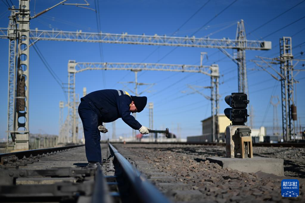 1月29日,格爾木電務段格爾木東信號車間察爾汗信號工區(qū)職工楊正宏在對察爾汗站道岔進行檢修作業(yè)。新華社記者 張龍 攝