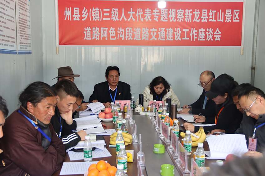 “設(shè)計車流承載量有多大,什么時候能夠完全竣工?”“要件都辦齊沒有?資金到位情況咋樣?”“全縣群眾對這條路充滿期望和關(guān)注,一定要加快進度、嚴格監(jiān)管,保證安全、質(zhì)量和環(huán)保;政府要統(tǒng)籌推動,相關(guān)部門要各司其職,確保把這條路建成惠民路、發(fā)展路、生態(tài)路、廉潔路……”2023年4月7日,新龍縣紅山景區(qū)道路阿色溝段建設(shè)施工現(xiàn)場,二十多名州、縣、鄉(xiāng)人大代表一邊查看道路建設(shè)情況,一邊對縣政府分管副縣長和相關(guān)部門負責(zé)人提出問題和建議。一問一答之間,彰顯人大依法履職、服務(wù)發(fā)展的責(zé)任和擔(dān)當(dāng)。