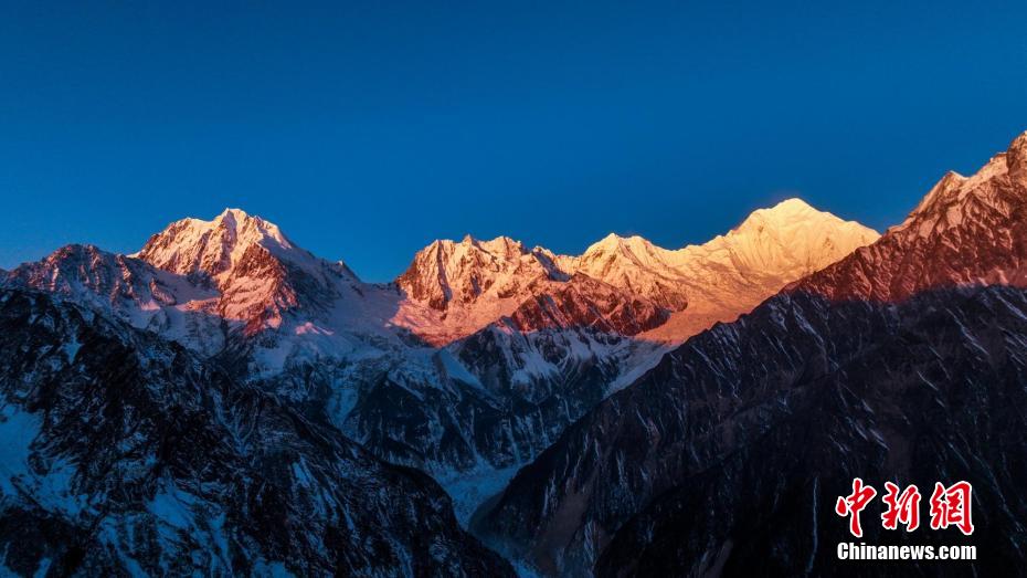 金燦燦的陽(yáng)光照在金銀峰、貢嘎雪山上。記者 劉忠俊 攝