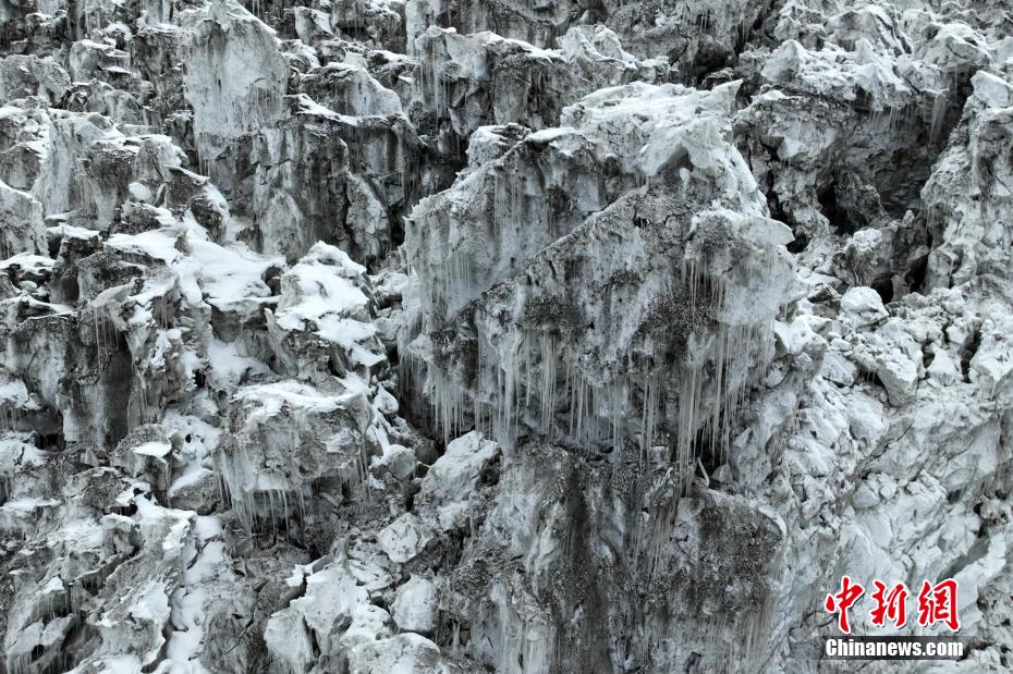 2月2日,四川省甘孜藏族自治州瀘定境內(nèi),一場(chǎng)雪后的貢嘎山披上了厚厚的“白紗”,在貢嘎山東坡順山而下的冰川沿海螺溝山谷綿延10多公里,就像一條“巨龍”盤在山谷中,十分壯觀。貢嘎山坐落于橫斷山系大雪山中段,主峰海拔7756米,被譽(yù)為蜀山之王。海螺溝冰川也是貢嘎山數(shù)十條冰川中規(guī)模最大、形態(tài)最美的一條。經(jīng)歷了2022年“9·5”瀘定地震后,海螺溝景區(qū)道路等重建工作完成,步游道、旅游服務(wù)設(shè)施升級(jí),游客逐步回升。航拍鏡頭下的海螺溝冰川粒雪盆下端的“冰川冰”。記者 劉忠俊 攝