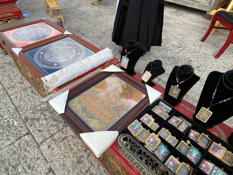 活動現(xiàn)場陳列的非遺產(chǎn)品:尼西土陶、木碗、藏香等精美展品吸引了眾多游客和市民欣賞、購買。