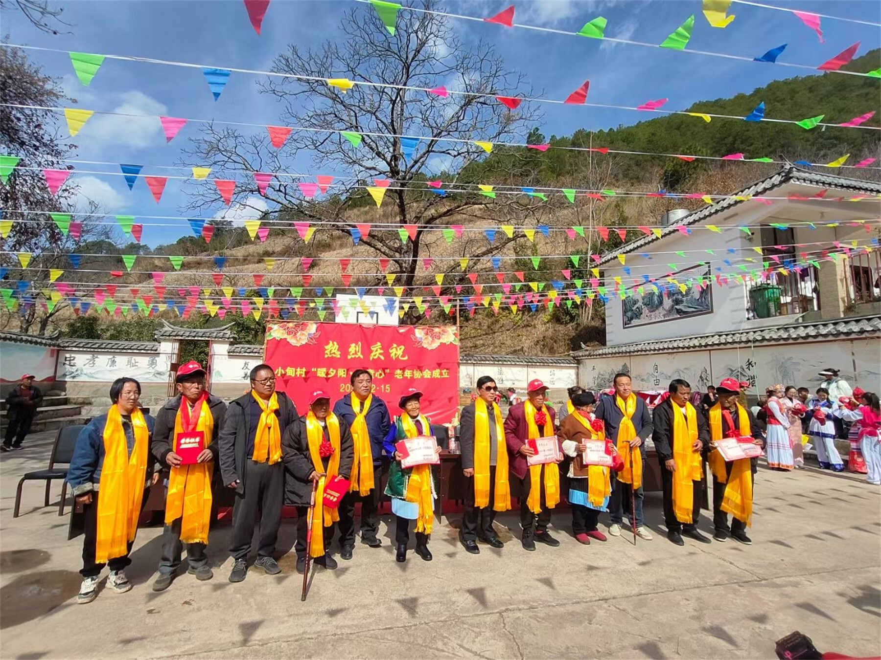 活動期間,社工人員對留守老人、困難家庭等群體進行了聊天陪伴,緩解他們精神的壓力,讓老人們在節(jié)日期間不孤單,感受到家人般的溫暖。社工站還積極協(xié)助小甸村成立了“暖夕陽、護童心”老年協(xié)會,并舉行了“最美老人、最孝兒媳、最孝兒女”的頒獎儀式,老年協(xié)會班子成員為留守兒童捐贈學習物品。同時,還開展了特色民族文化文藝匯演和適合老年人參與的游園活動。