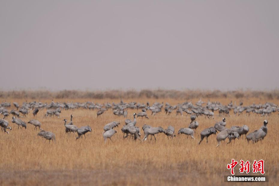 候鳥遷徙季:大批灰鶴聚集青海省都蘭縣