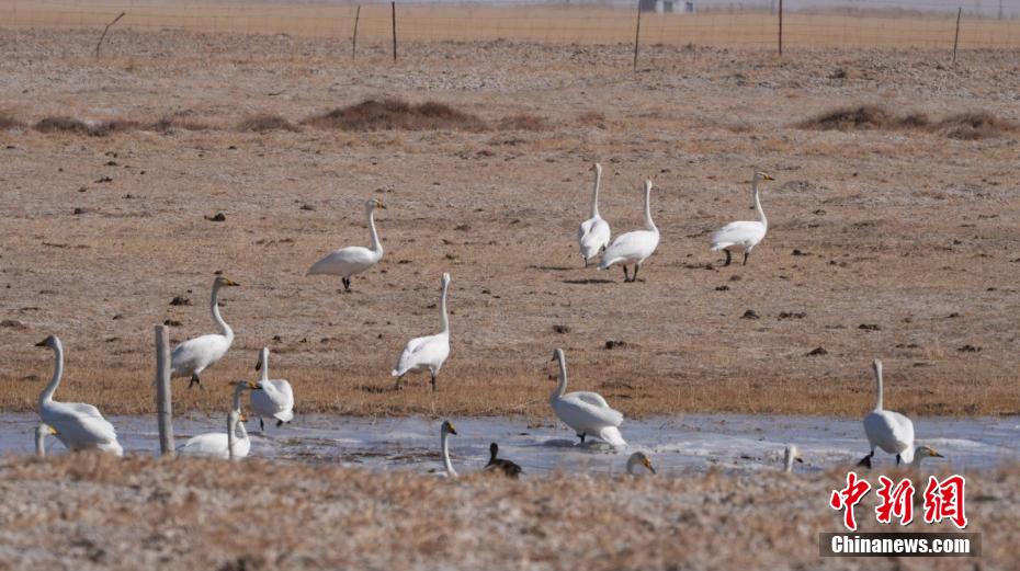 青海:野生大天鵝群在黃河越冬 高原冬日添靚景