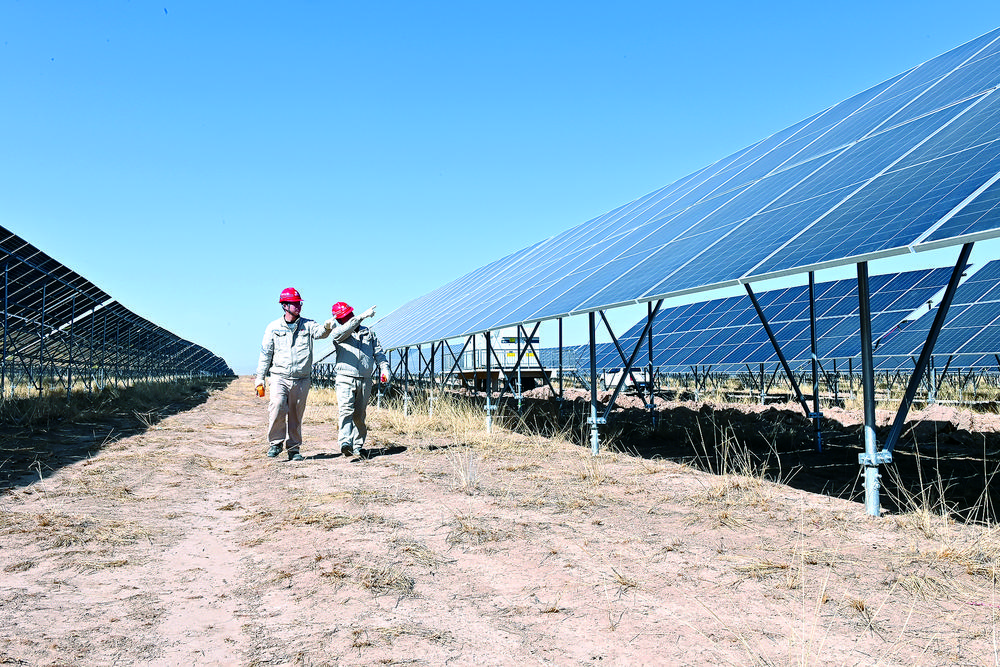 對于光伏產(chǎn)業(yè)發(fā)展而言,“智”造既能讓電站建設(shè)運維等更加便捷,也能讓光伏組件的生產(chǎn)能效提高。在海南州興海縣河卡灘,國家第一批“沙戈荒”重點大型風(fēng)電光伏基地建設(shè)項目——大唐興海大基地50萬千瓦光伏項目現(xiàn)場,運維員張國茂、趙潤峰正在定期巡檢工作,檢查光伏板、逆變器、變壓器等設(shè)備的外觀是否損壞、連接是否松動、是否有異常聲音,詳細記錄運行數(shù)據(jù),以便及時發(fā)現(xiàn)異常情況。