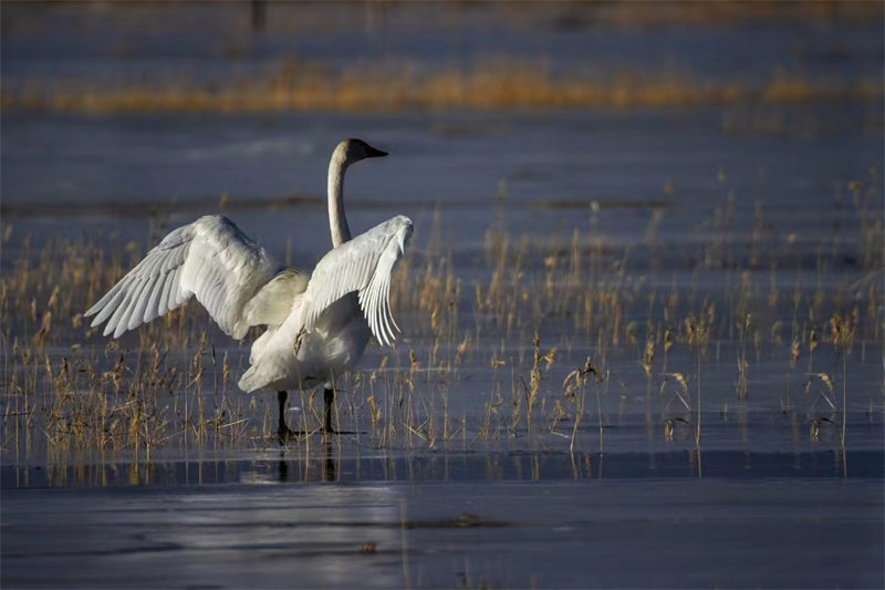 上百只天鵝飛抵柴達(dá)木盆地可魯克湖越冬
