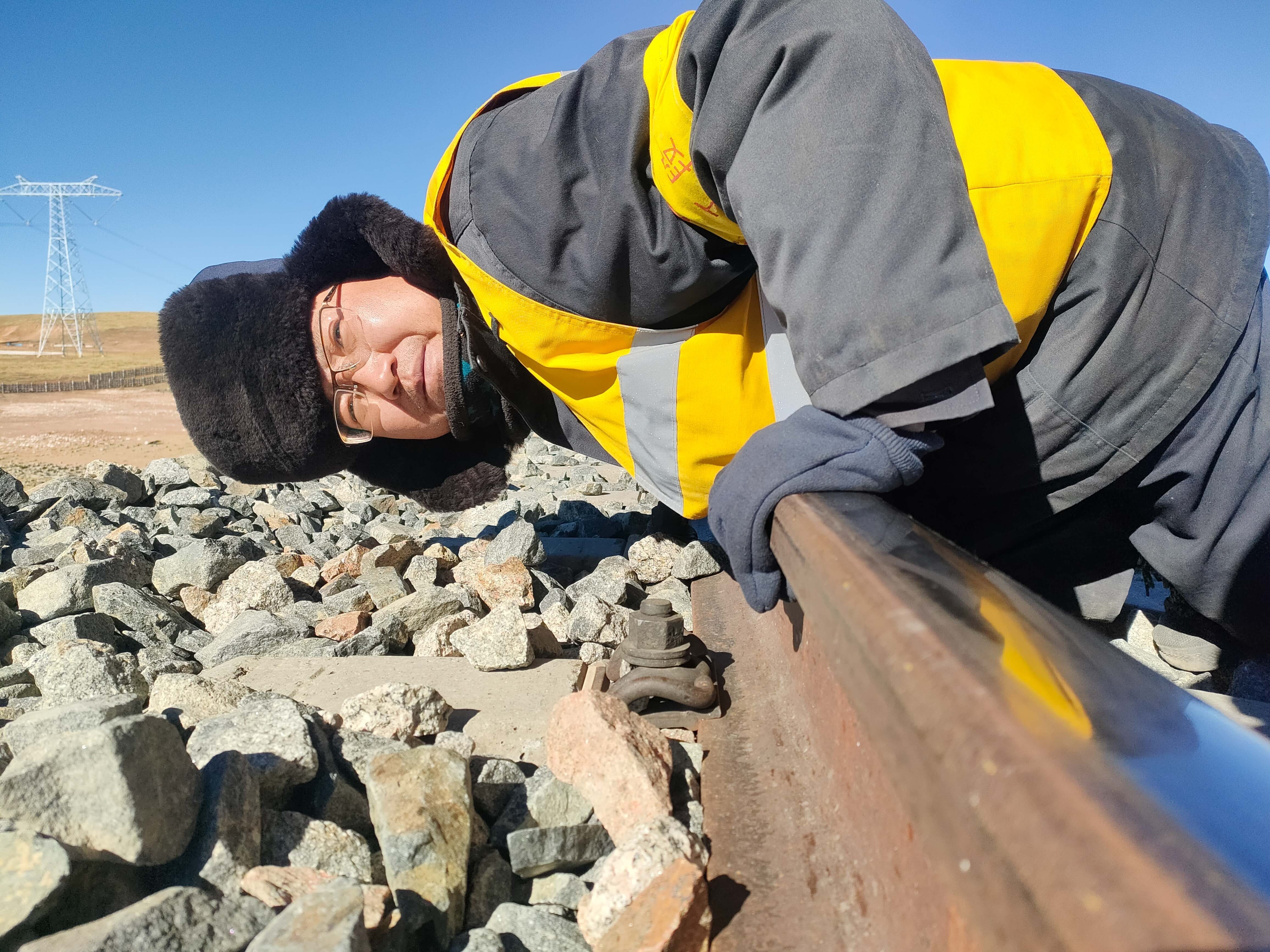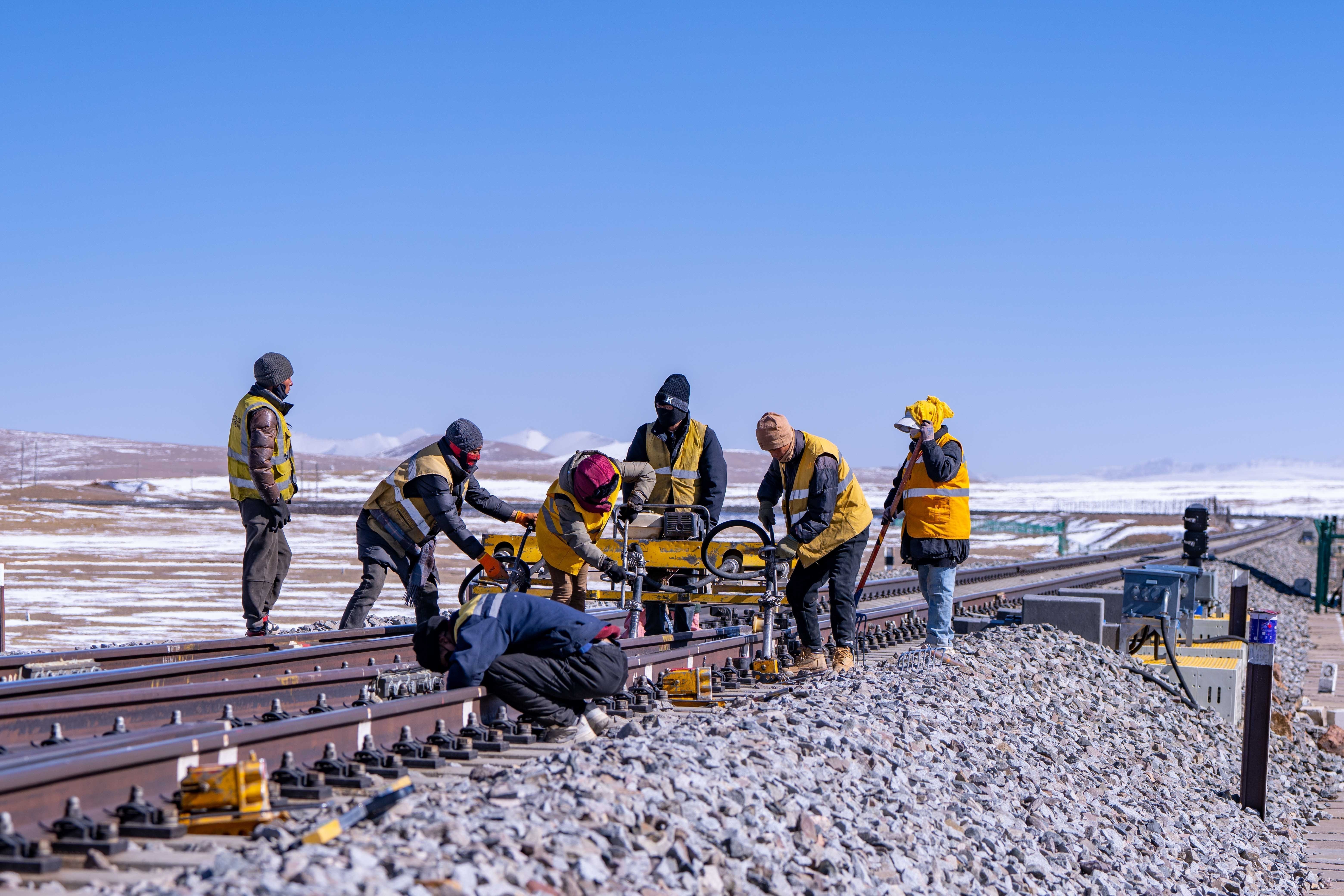 施工時間有限,工人們的速度不斷加快。馬祎俊指揮安排好幾名鐵路工人,大家各司其職,迅速開始動手維護鐵路鋼軌。天氣讓鋼軌比冰塊更加寒冷。隔著佩戴的線手套,依舊能感受到風和鐵軌上的寒冷鉆進手套里,沁到骨頭里。