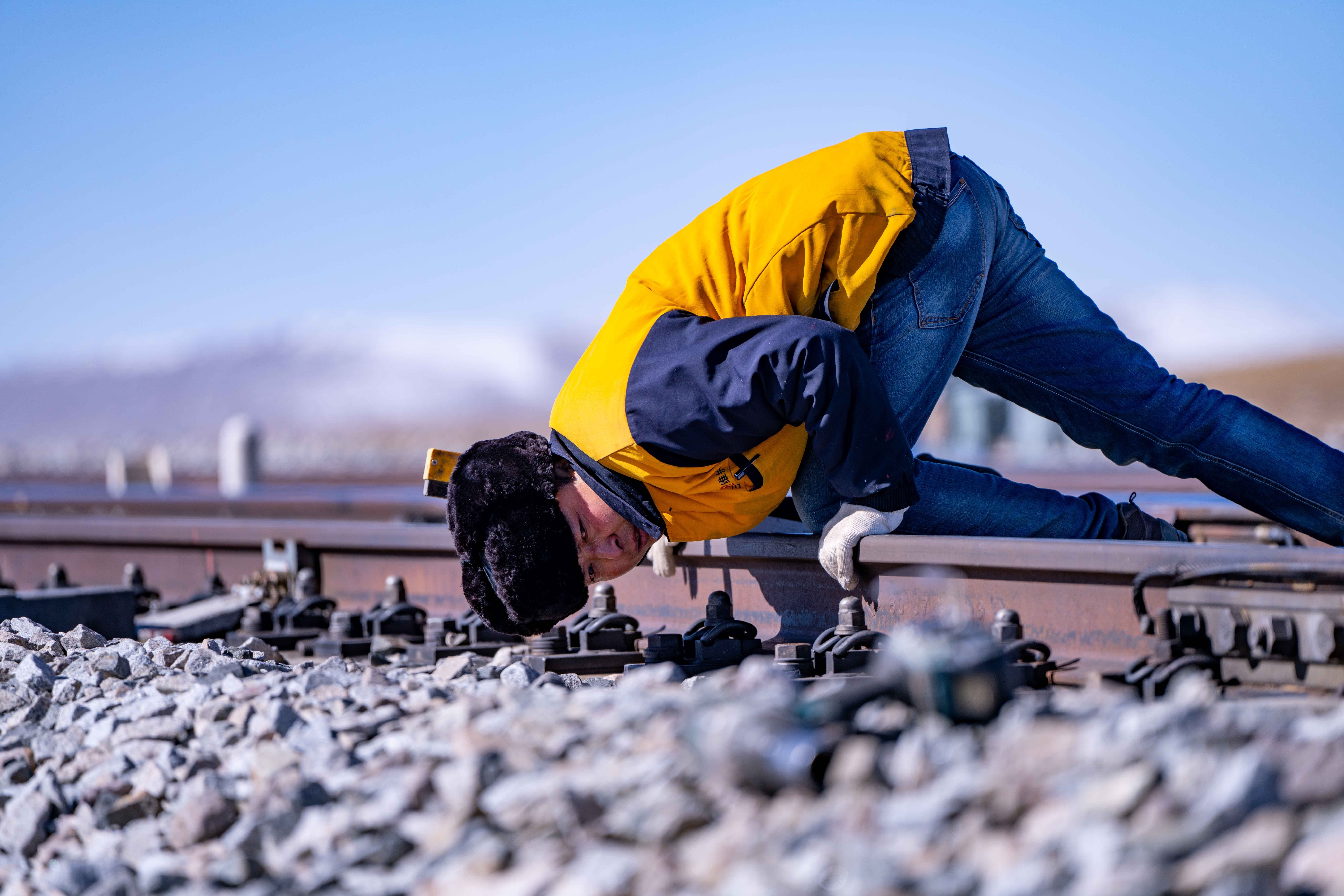 在唐古拉山,天窗無論早晚——從滿天星斗到晨光熹微,只要是需要施工的時候,馬祎俊都會帶著工人們奮戰(zhàn)在鐵軌之上?!盀榱俗岃F路更加平穩(wěn),我們多辛苦都值得?!彼f。