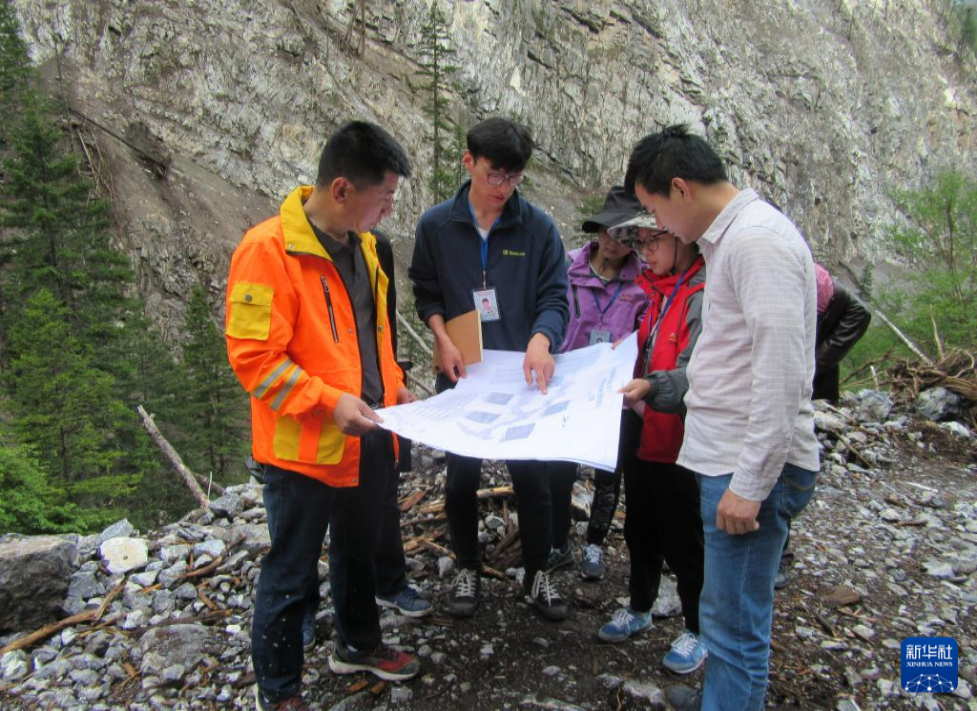 2018年,裴向軍(左一)率團隊在九寨溝做震后地質(zhì)災(zāi)害詳查(資料照片)。新華社發(fā)