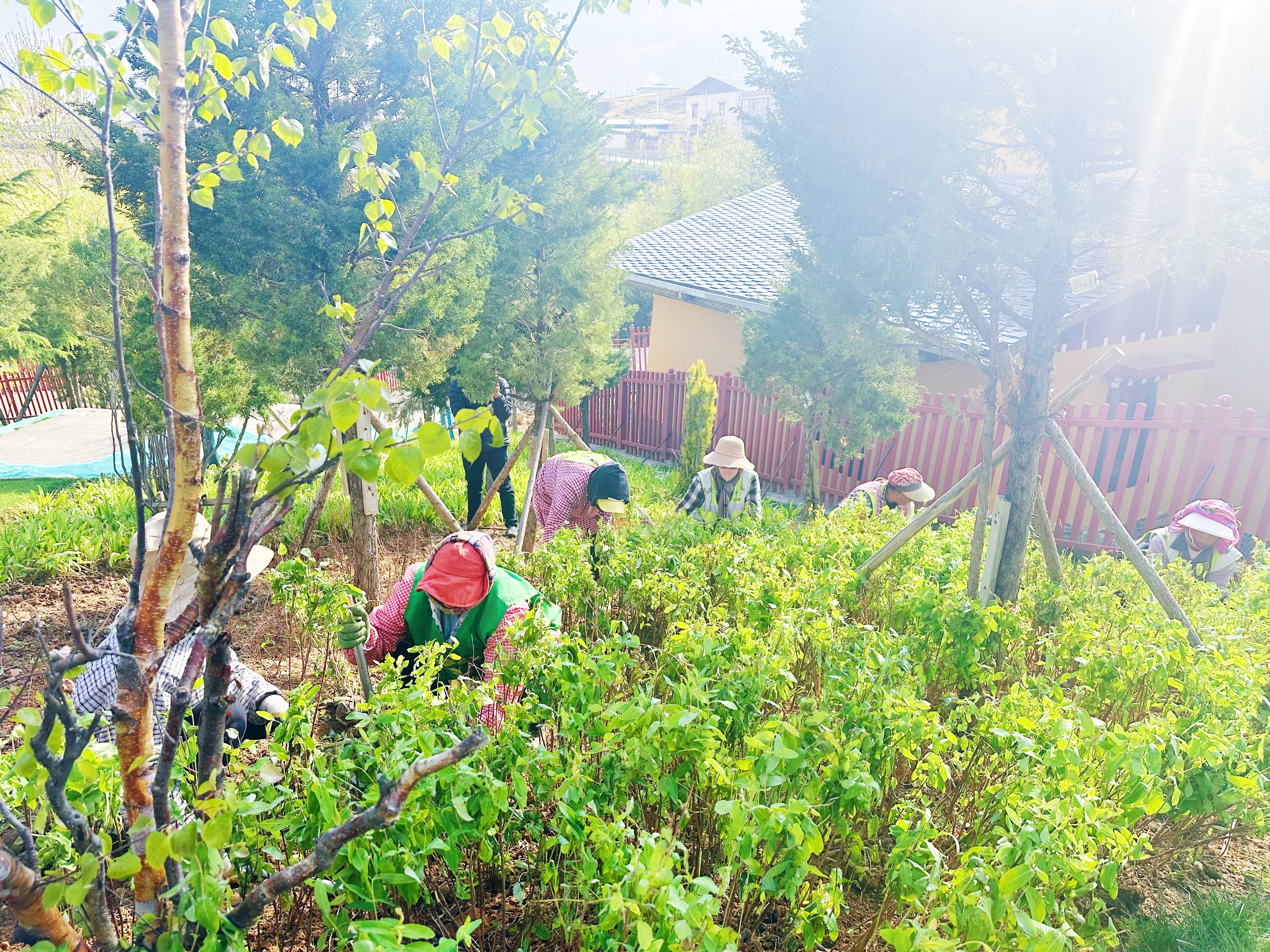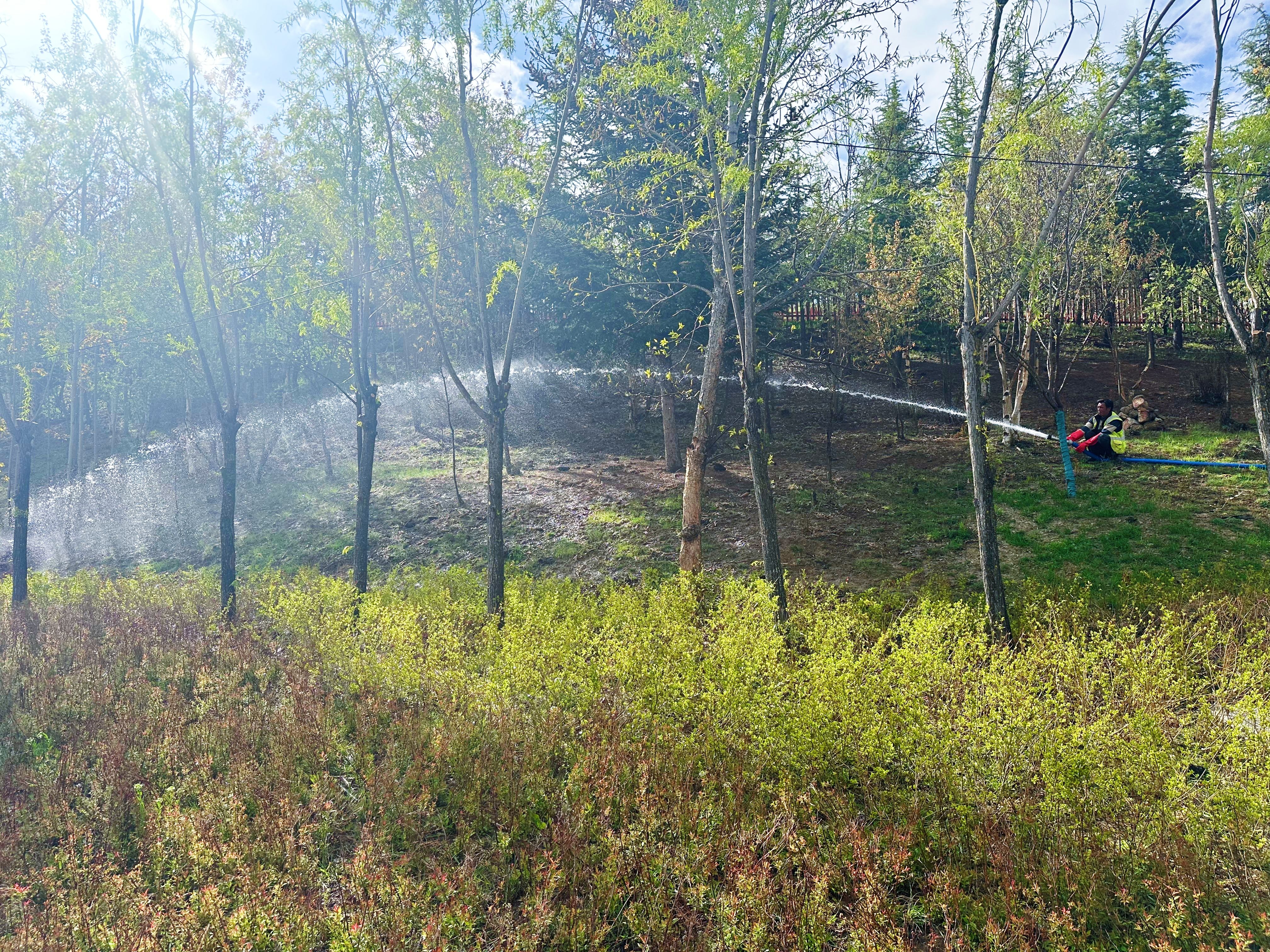當記者走近拉姆央措湖觀景臺附近,綠化養(yǎng)護工人們穿梭其間,他們或蹲或站,有的正對樹苗進行補種,有的忙著清理灌木叢中的雜草,還有的正在對綠化苗木進行全面的澆灌,到處一派繁忙景象。