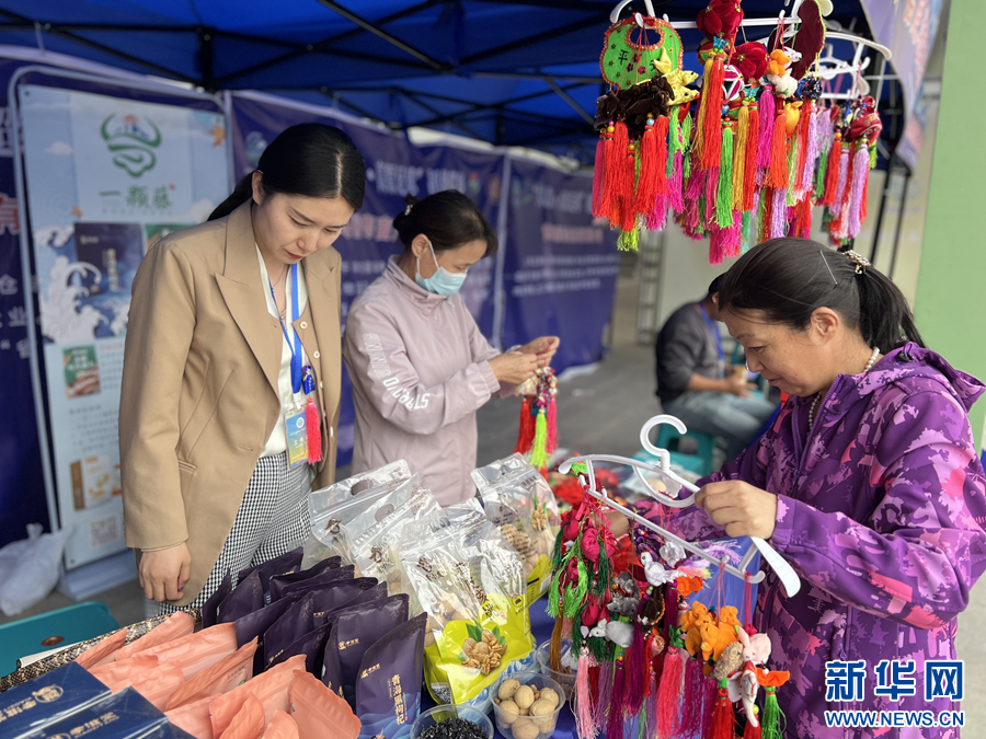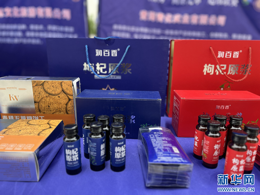 農(nóng)畜產(chǎn)品展示區(qū)的青海特色產(chǎn)品。新華網(wǎng) 魚昊 攝