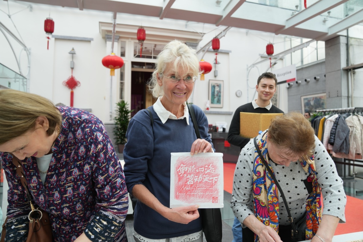 有著1800多年歷史的傳拓,堪稱“中國最古老的印刷術”,是一種重要的文物保護和古籍修復技術。發(fā)展至今,已從拓金石發(fā)展為萬物可拓;從拓文字、圖案發(fā)展為全形拓。為讓歐洲民眾近距離感受傳拓的獨特魅力,昆明市非物質文化遺產(chǎn)傳承人張衡特別創(chuàng)作集立體拓、書法、篆刻等多種藝術形式為一體的“普洱茶拓”,并定制“云騰四?!ぼ鴦犹煜隆薄安桉R古道”等拓版供嘉賓體驗。