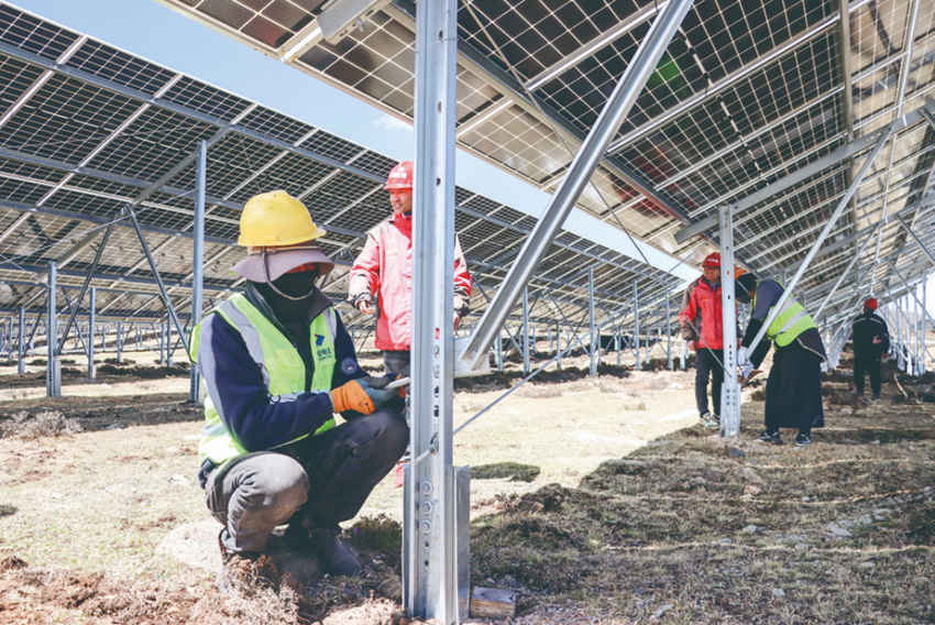 正午的陽光灼熱,呷瑪丁建全副武裝地操作著器械,逐一摸排著光伏板組件的螺絲有無松動(dòng)、支架有無斷裂、陣列是否完好,同其他20多名工人一道對(duì)樂拉光伏電站進(jìn)行最后一輪安裝收尾消缺工作。工人們動(dòng)作嫻熟、速度很快,不一會(huì)兒,一個(gè)光伏板方陣便被“無死角”檢查排患完畢。