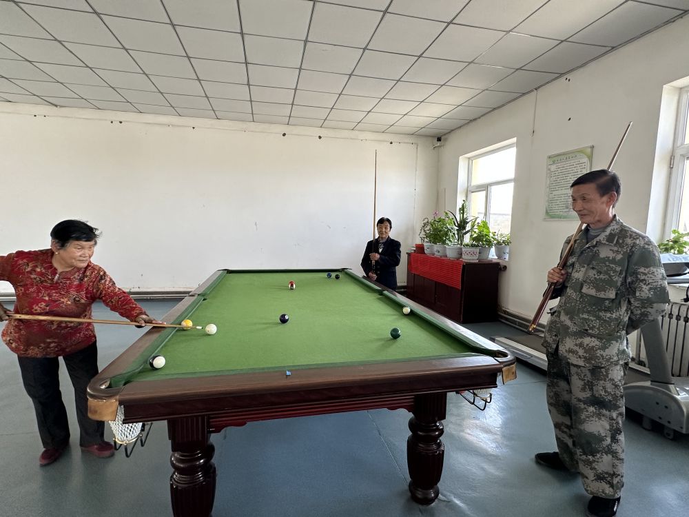 “在這兒吃住免費(fèi),飯有人做,衣服有人洗,每月還有100多元的養(yǎng)老金和零花錢。”在活動(dòng)室里,王金蓮手握臺(tái)球桿,熟練推桿。入住敬老院后,運(yùn)動(dòng)成了她的生活日常。