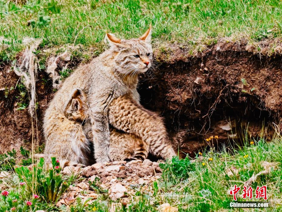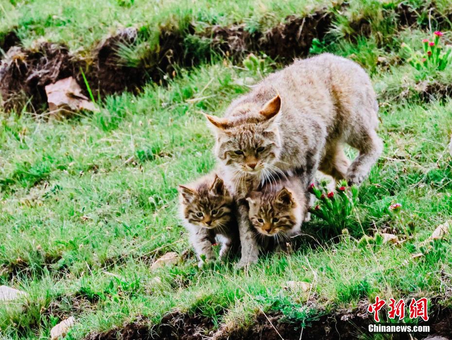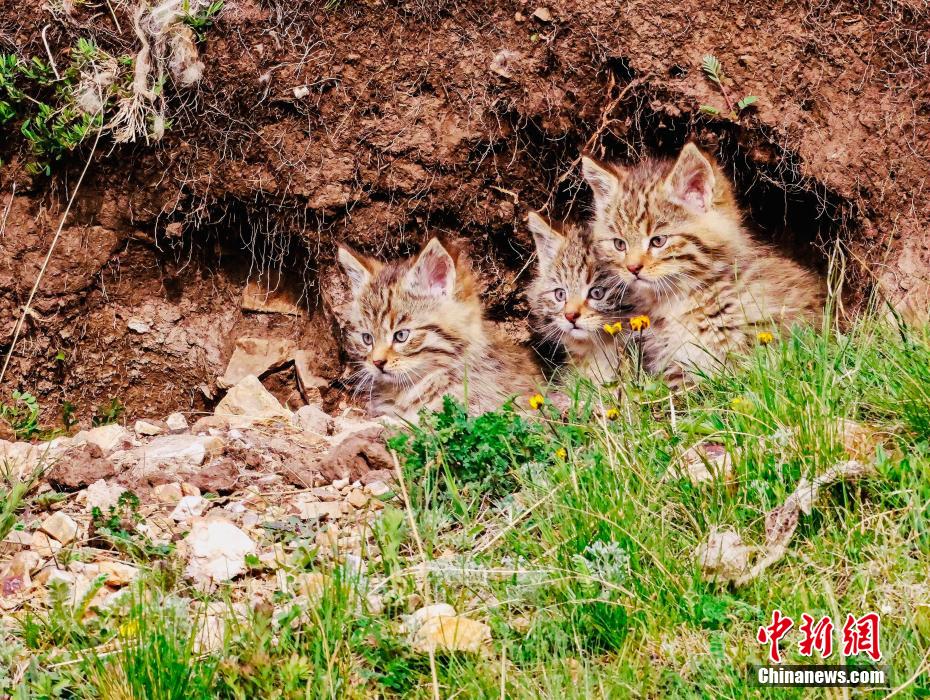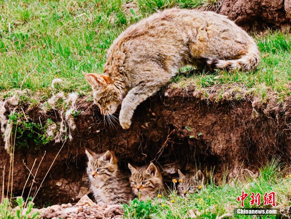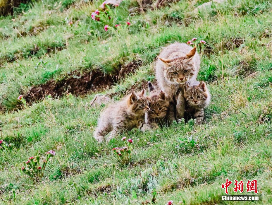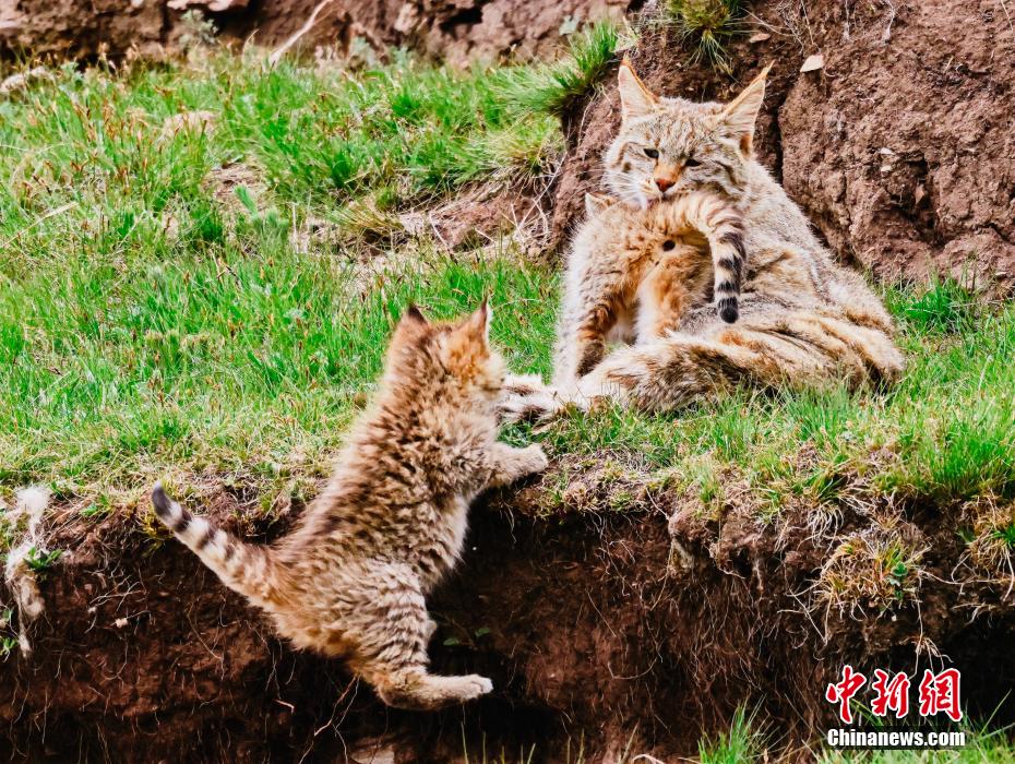 6月15日,盛夏時節(jié),在青海省海北藏族自治州海晏縣哈勒景蒙古族鄉(xiāng)查庫太草原上,攝影愛好者拍攝到荒漠貓幼崽出窩“踏青”的畫面。畫面中,荒漠貓幼崽或是與媽媽嬉戲玩耍,或是“哥仨”追逐打鬧,或是練習捕獵技巧,甚是呆萌可愛?;哪埛植加谇嗖馗咴瓥|部,是中國特有的貓科動物,國家一級重點保護野生動物。