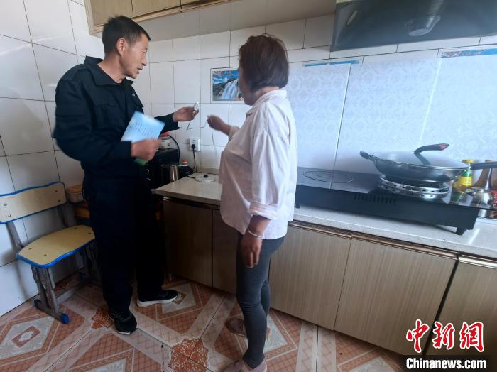 石炳壽穿上印有“海北應(yīng)急”的藏青色外套,拿上鄉(xiāng)政府分發(fā)的安全防范須知就往家門外快步走去。
