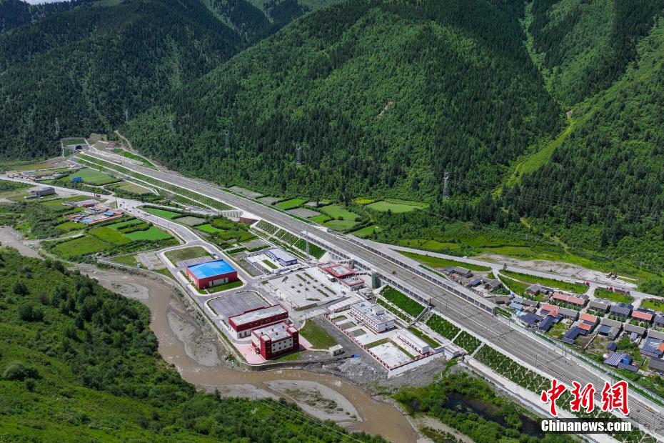 圖為7月7日拍攝的川青鐵路黃龍九寨站站房外景。(無人機照片)中新社記者 劉忠俊 攝