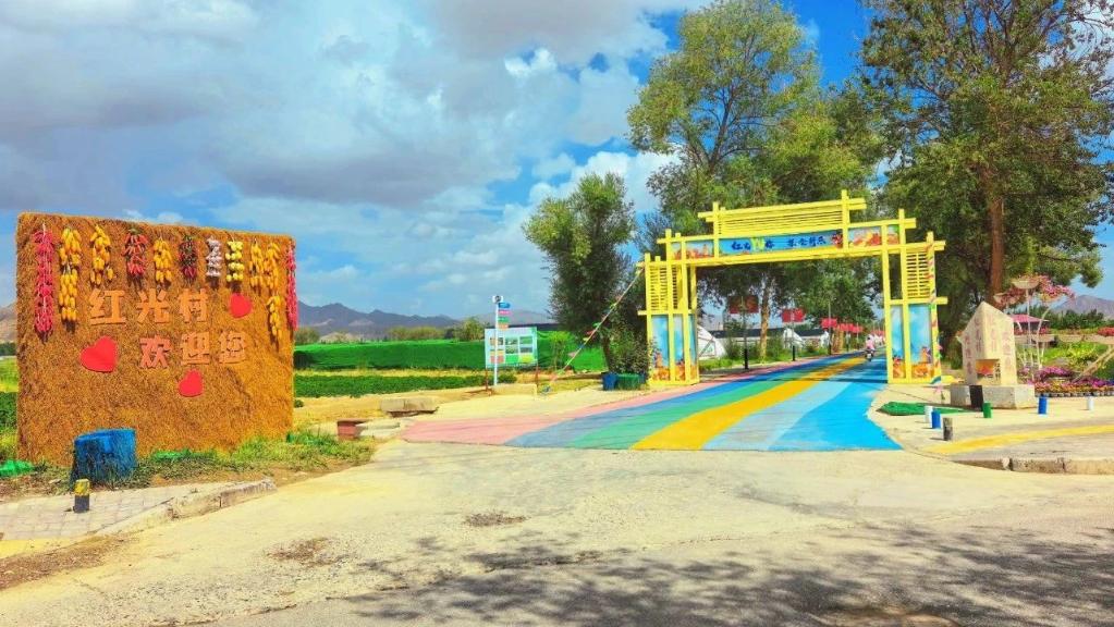 一條繽紛亮眼的“彩虹步道”從村口一直向里延伸,“彩虹步道”兩旁種滿(mǎn)了瓜果蔬菜,不遠(yuǎn)處還有采摘體驗(yàn)園和燒烤露營(yíng)地,在青海省海西蒙古族藏族自治州德令哈市郊的紅光村,別樣的田園風(fēng)情給烈日炎炎下的德令哈增加了一絲清爽。