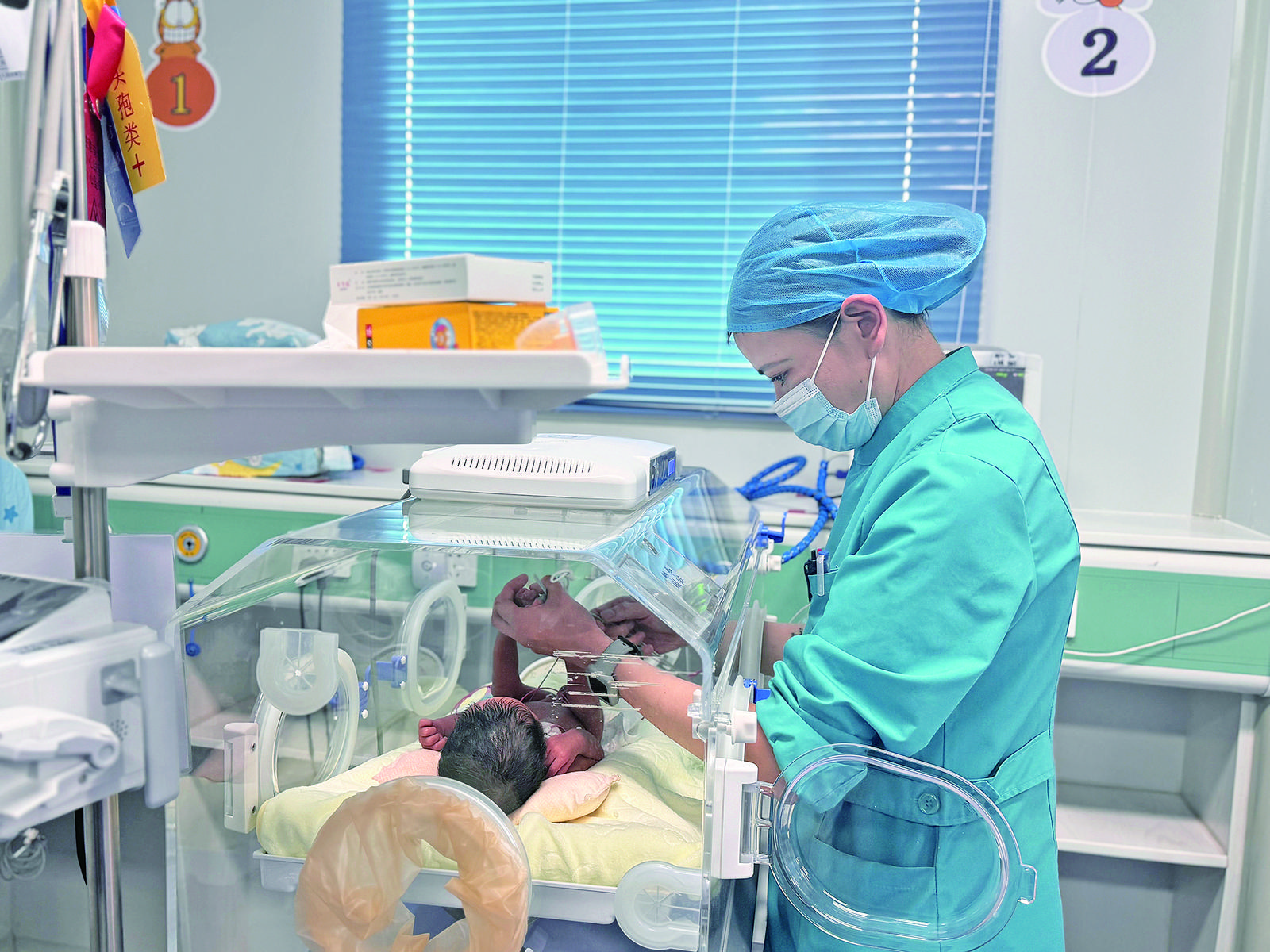 果洛州人民醫(yī)院NICU病區(qū)里醫(yī)護人員精心照顧新生兒。亞君 余暉 攝