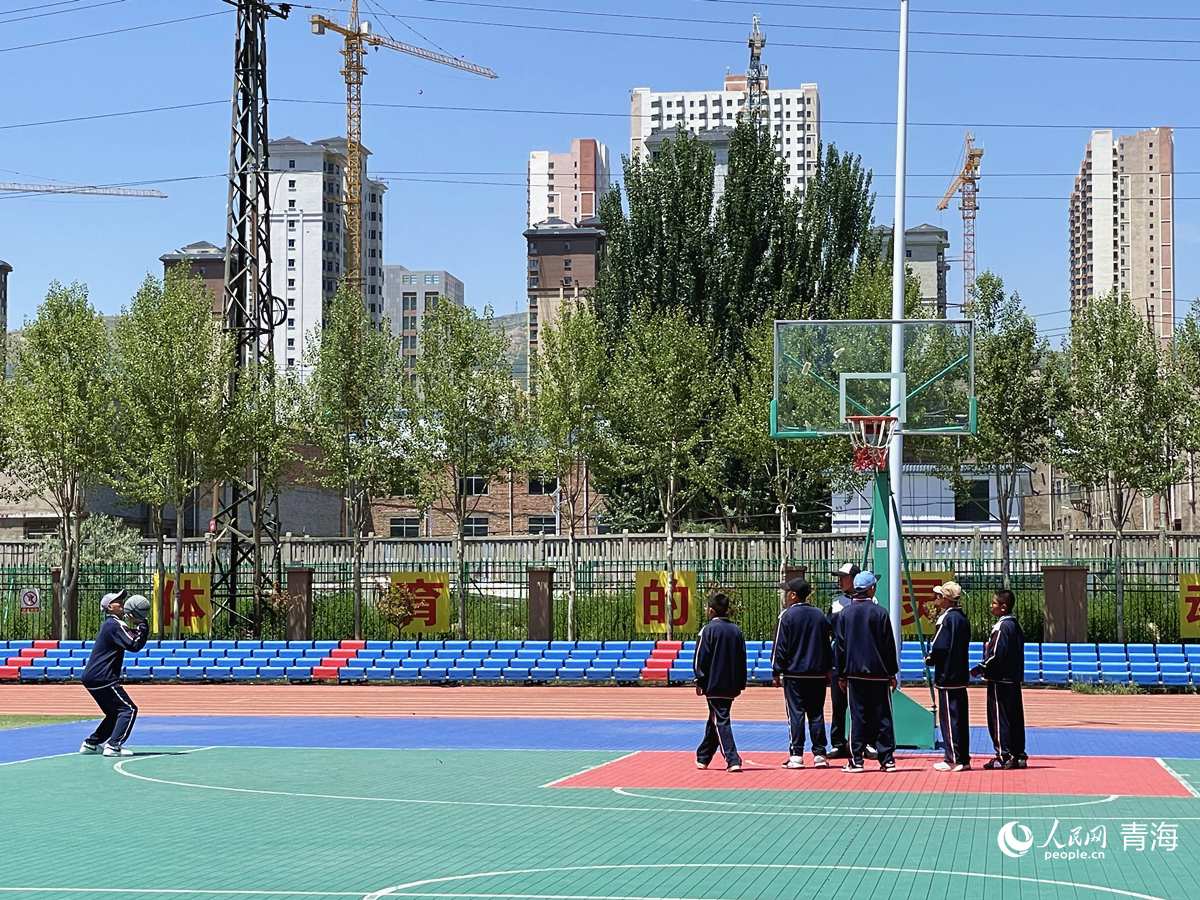 果洛西寧民族中學(xué)的學(xué)生正在打籃球。人民網(wǎng) 況玉 攝