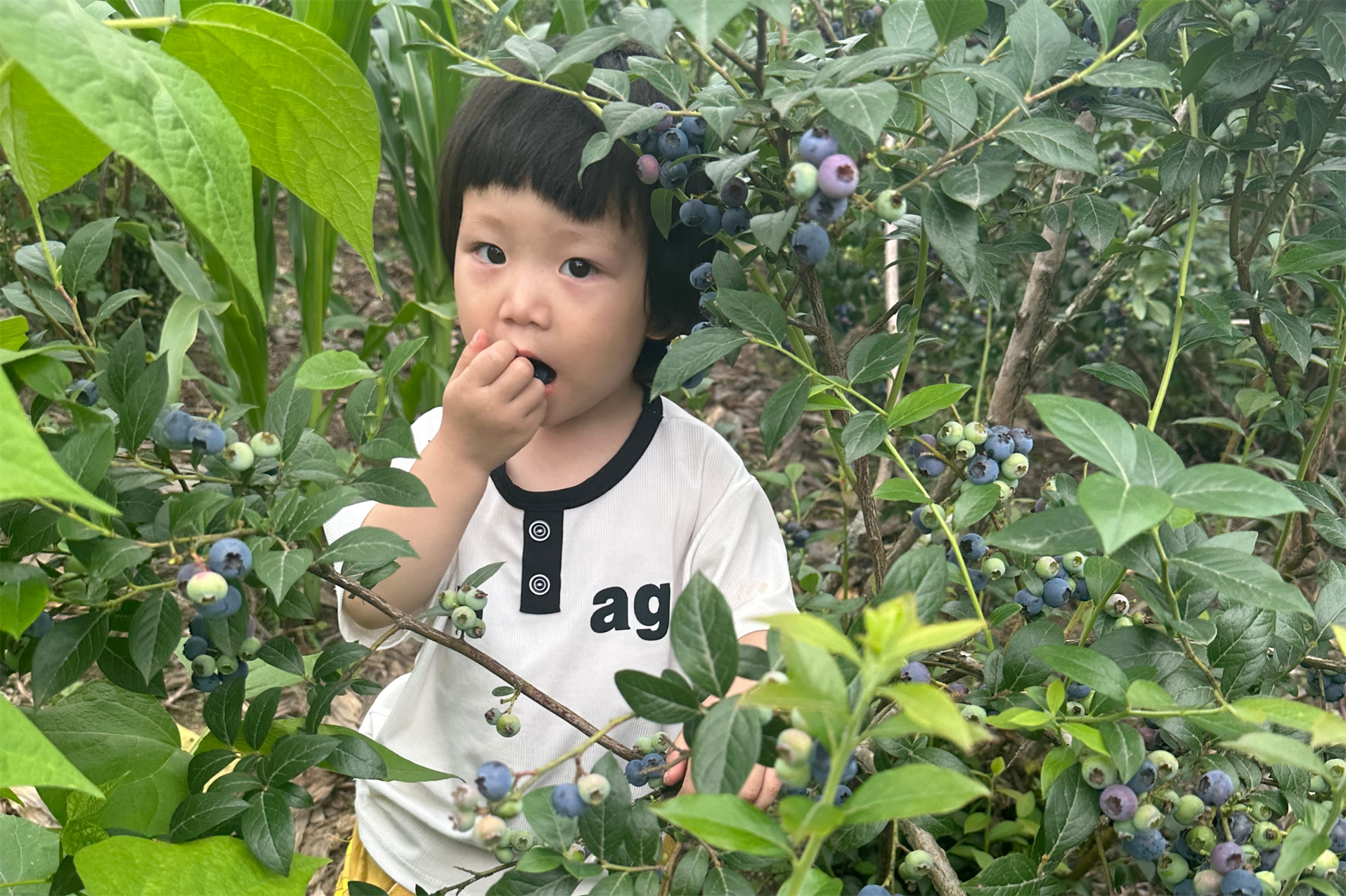 小朋友正在體驗藍莓采摘。