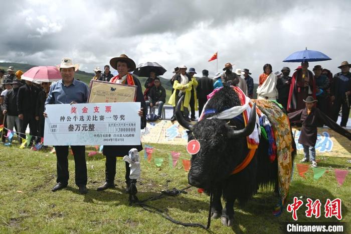 經(jīng)現(xiàn)場(chǎng)評(píng)審團(tuán)評(píng)選,來(lái)自白玉縣阿察鎮(zhèn)阿察村洛真家的牦牛以1158斤重量獲冠軍?!瓣笈_x美”比賽不僅展示了白玉縣牦牛的優(yōu)良品質(zhì),也激發(fā)了牧民們進(jìn)一步優(yōu)化養(yǎng)殖的熱情。