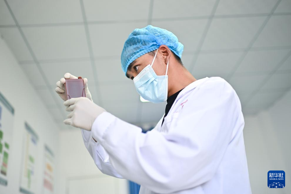 7月31日,青海省果洛藏族自治州達日縣窩賽鄉(xiāng)衛(wèi)生院醫(yī)生格桑冷智在進行醫(yī)學(xué)檢驗。新華社記者 張龍 攝