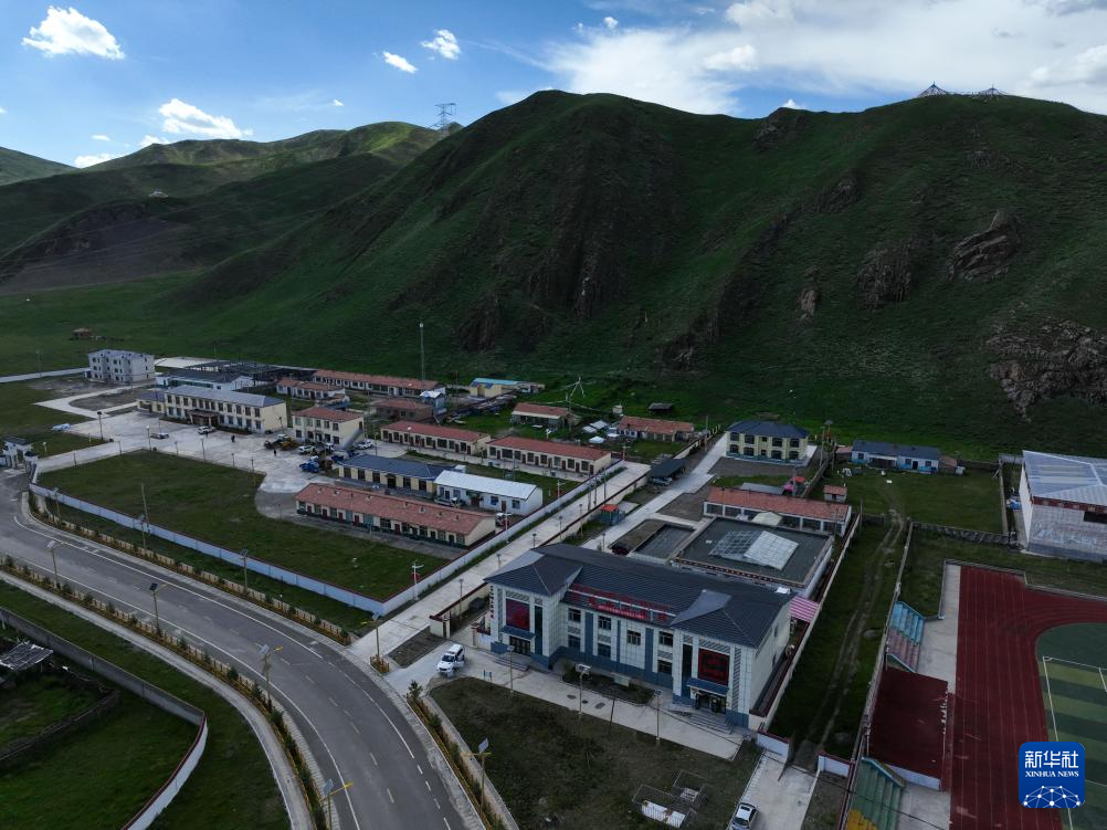 這是7月31日拍攝的青海省果洛藏族自治州達日縣窩賽鄉(xiāng)衛(wèi)生院,當(dāng)?shù)仄骄0纬^4000米(無人機照片)。新華社記者 張龍 攝