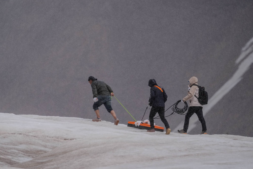 在海拔5200多米的冬克瑪?shù)妆_下,長江科學院水利部巖土力學與工程重點實驗室工程師范越和景旭等隊友,攜帶30多公斤的雷達設(shè)備,向著冰川進發(fā)。他們穿過冰川消融形成的河流,在冰川上鋪設(shè)測量線,連續(xù)記錄探地雷達接收到的電磁信號,依據(jù)反演數(shù)據(jù)探測冰川厚度。