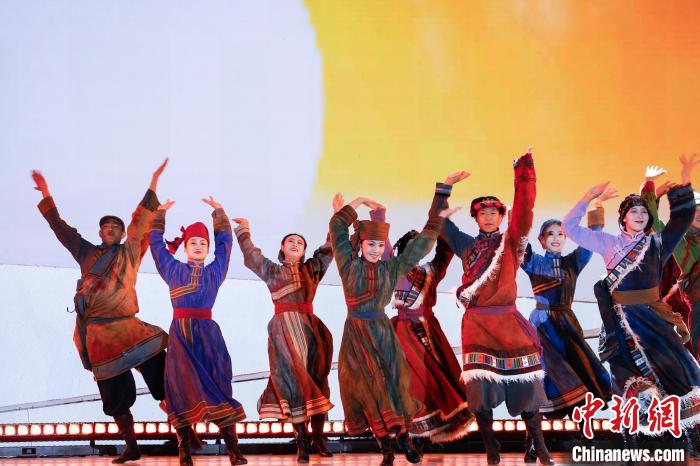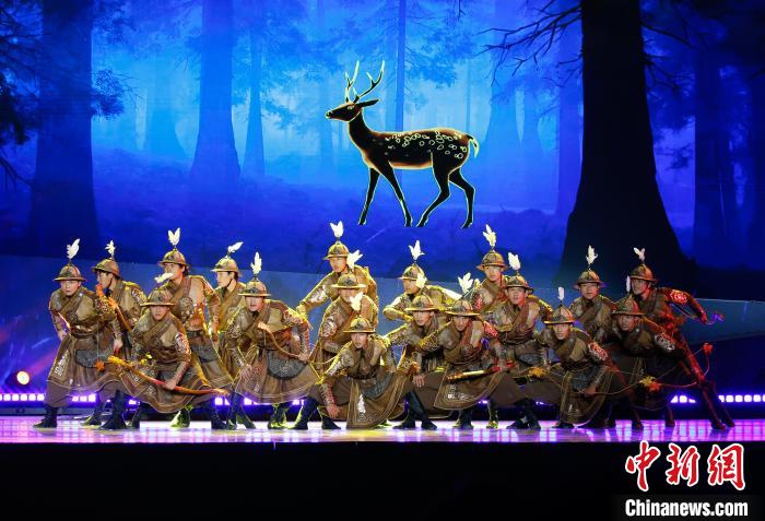 圖為晚會(huì)現(xiàn)場(chǎng)進(jìn)行舞蹈表演《黃金騎士》。中新社記者 馬銘言 攝