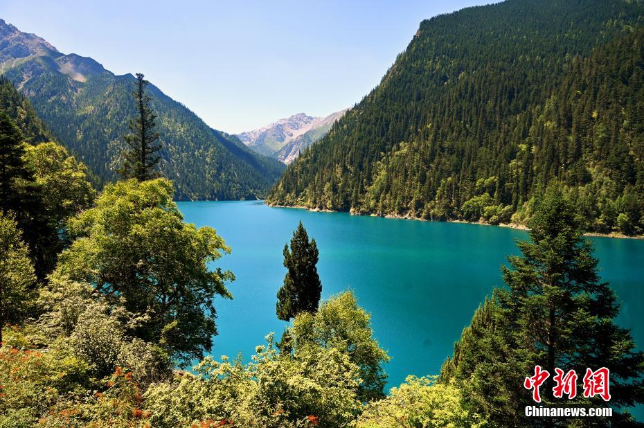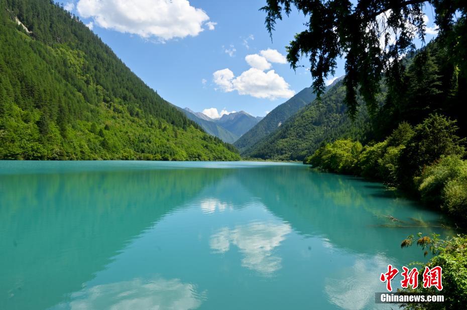 8月13日,世界自然遺產(chǎn)地九寨溝景區(qū)風景如畫,吸引眾多游客觀光游玩。