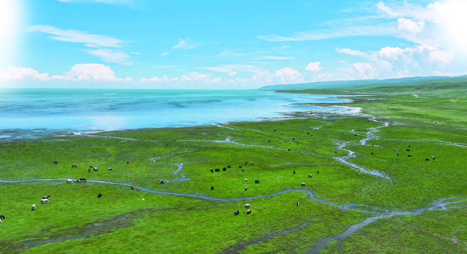 盛夏時節(jié),漫步在青海湖畔,藍天、雪山、草原、湖泊勾勒出一幅和美的生態(tài)畫卷。