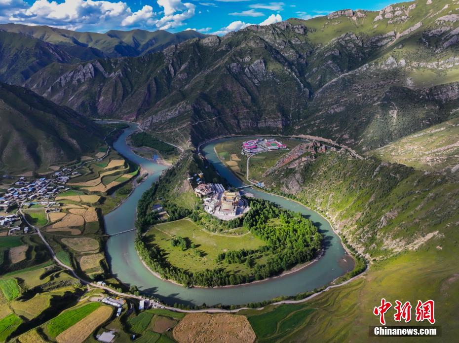 青海省玉樹藏族自治州囊謙縣地處青海省最南端、三江源腹地,瀾滄江上游五條支流貫穿全境,在該縣毛莊鄉(xiāng),瀾滄江東源孜曲蜿蜒而下,古老的尕丁寺被孜曲包圍,成為當(dāng)?shù)鬲?dú)特風(fēng)景。