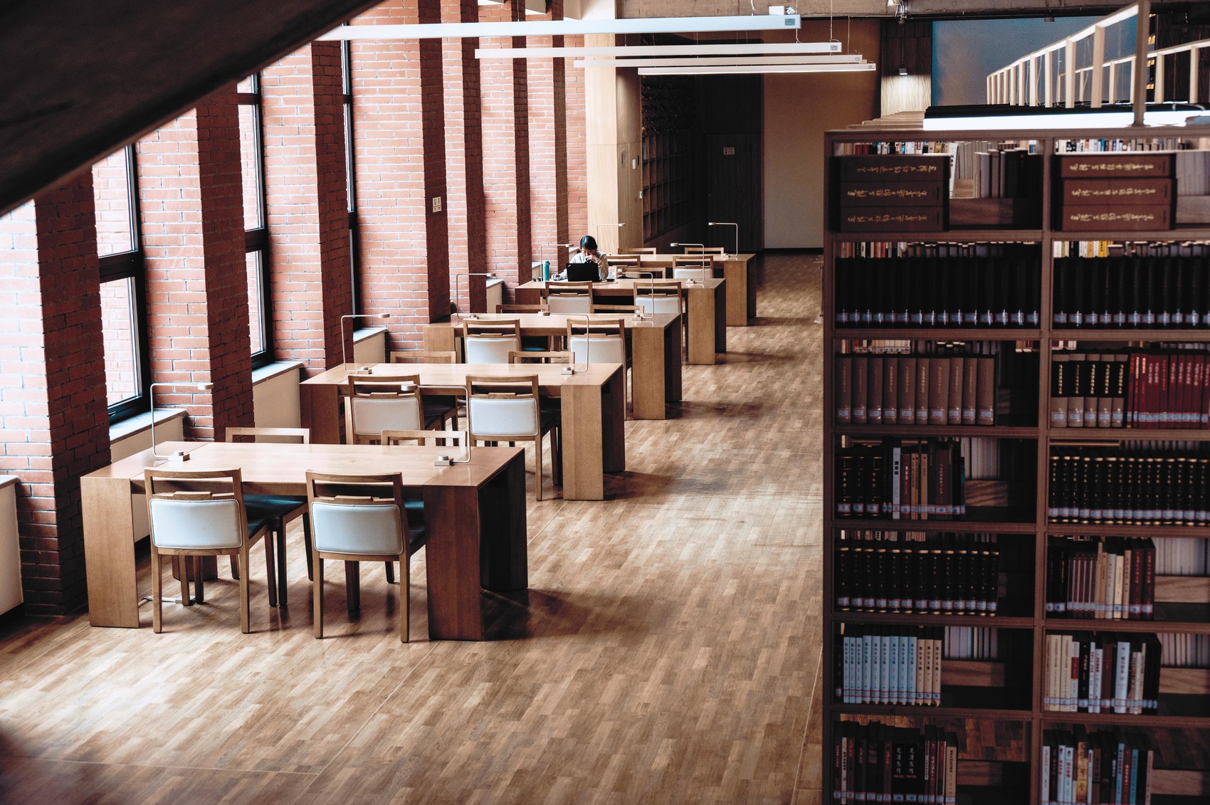 圖書(shū)館中閱讀區(qū)和書(shū)架。
