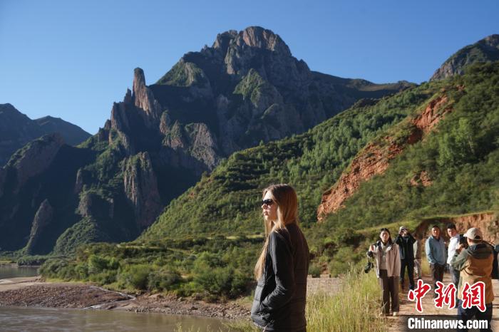 圖為中外文旅達(dá)人在瀾滄江上游的河谷中拍照打卡。馬銘言 攝
