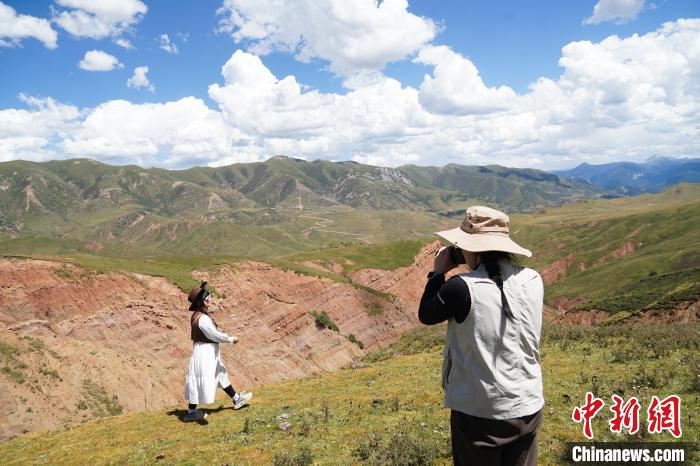 圖為文旅達(dá)人在高原河谷之上拍照。馬銘言 攝