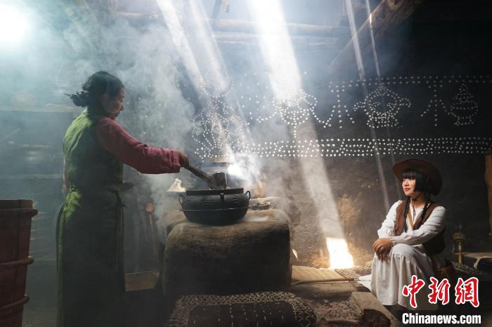 在囊謙縣娘拉鄉(xiāng)的藏式古堡內(nèi),旅游達(dá)人們走進(jìn)擁有百余年歷史的藏族人家,與女主人一起體驗(yàn)生火、熬煮奶茶。