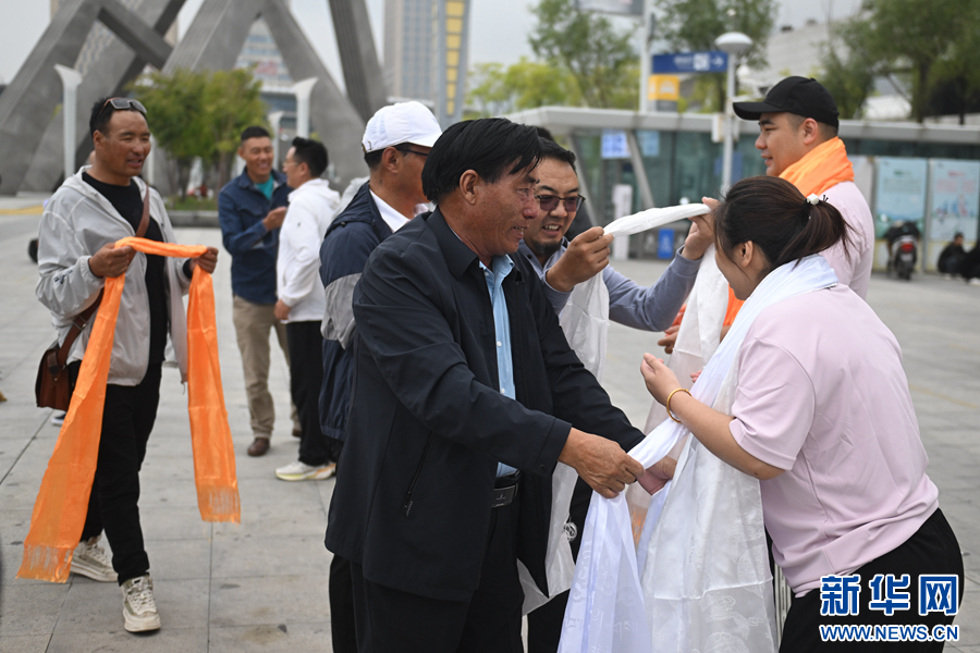 學(xué)生家長(zhǎng)為翔宇中學(xué)老師獻(xiàn)哈達(dá)。新華社記者 張龍 攝