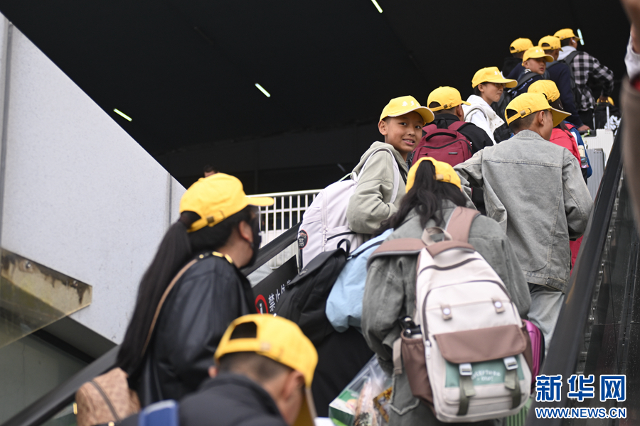 學(xué)生們?cè)诨疖囌炯?,整裝待發(fā)。新華社記者 張龍 攝
