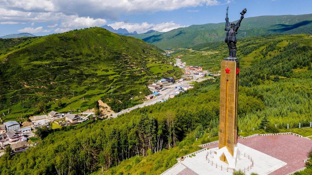 位于松潘縣川主寺鎮(zhèn)的紅軍長征紀(jì)念碑(資料圖)。新華社記者 王曦 攝