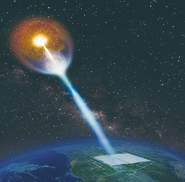 “拉索”探測伽馬射線暴(GRB 221009A)藝術圖。中國科學院高能物理所供圖
