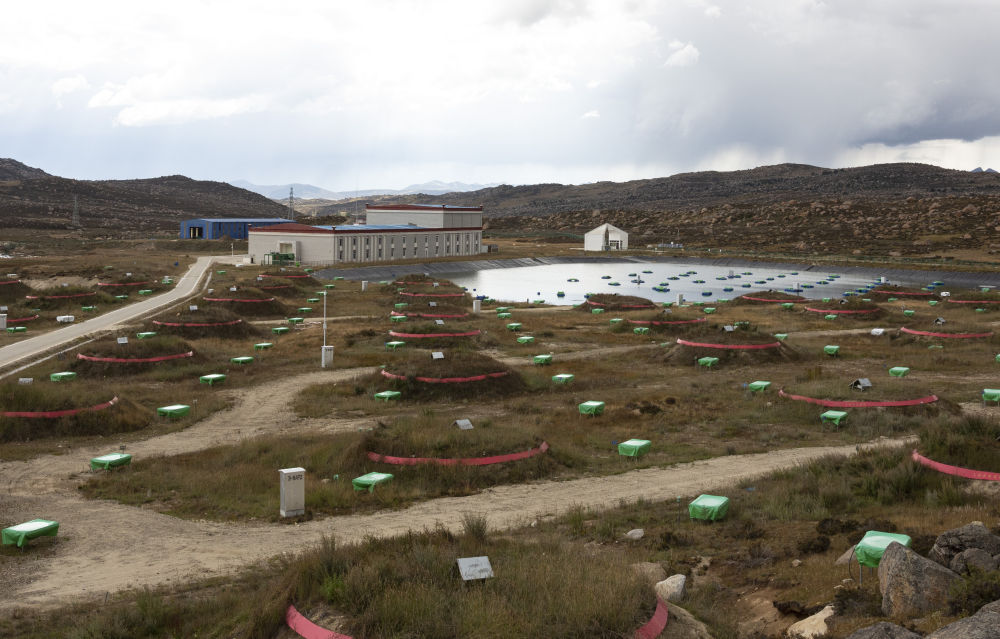 這是9月20日在“拉索”觀測站拍攝的蓄水池邊和繆子探測器。新華社記者 金立旺 攝