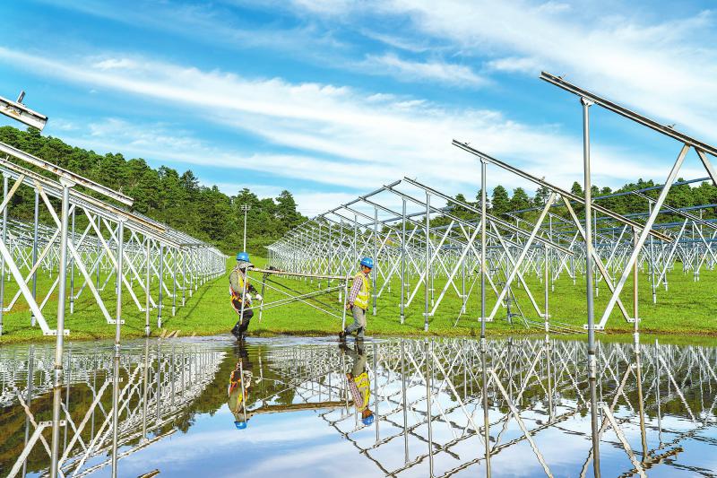扎拉山光伏電站開展支架安裝,該項(xiàng)目是雅礱江流域在建規(guī)模最大的新能源項(xiàng)目。謝剛 攝