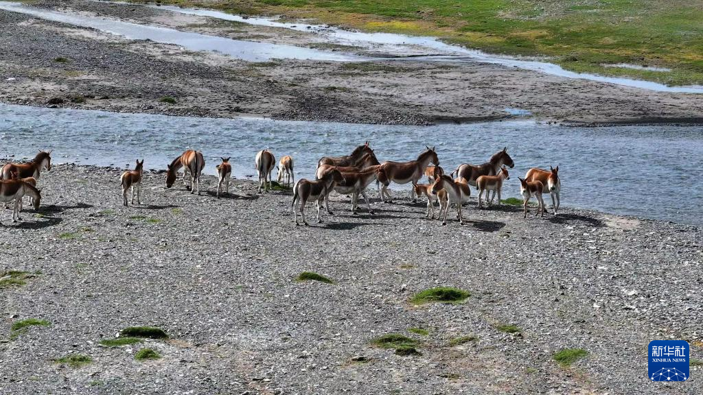 這是8月9日在位于三江源國家公園長江源園區(qū)的曲麻萊縣境內拍攝的藏野驢(無人機照片)。 新華社發(fā)(昂江 攝)